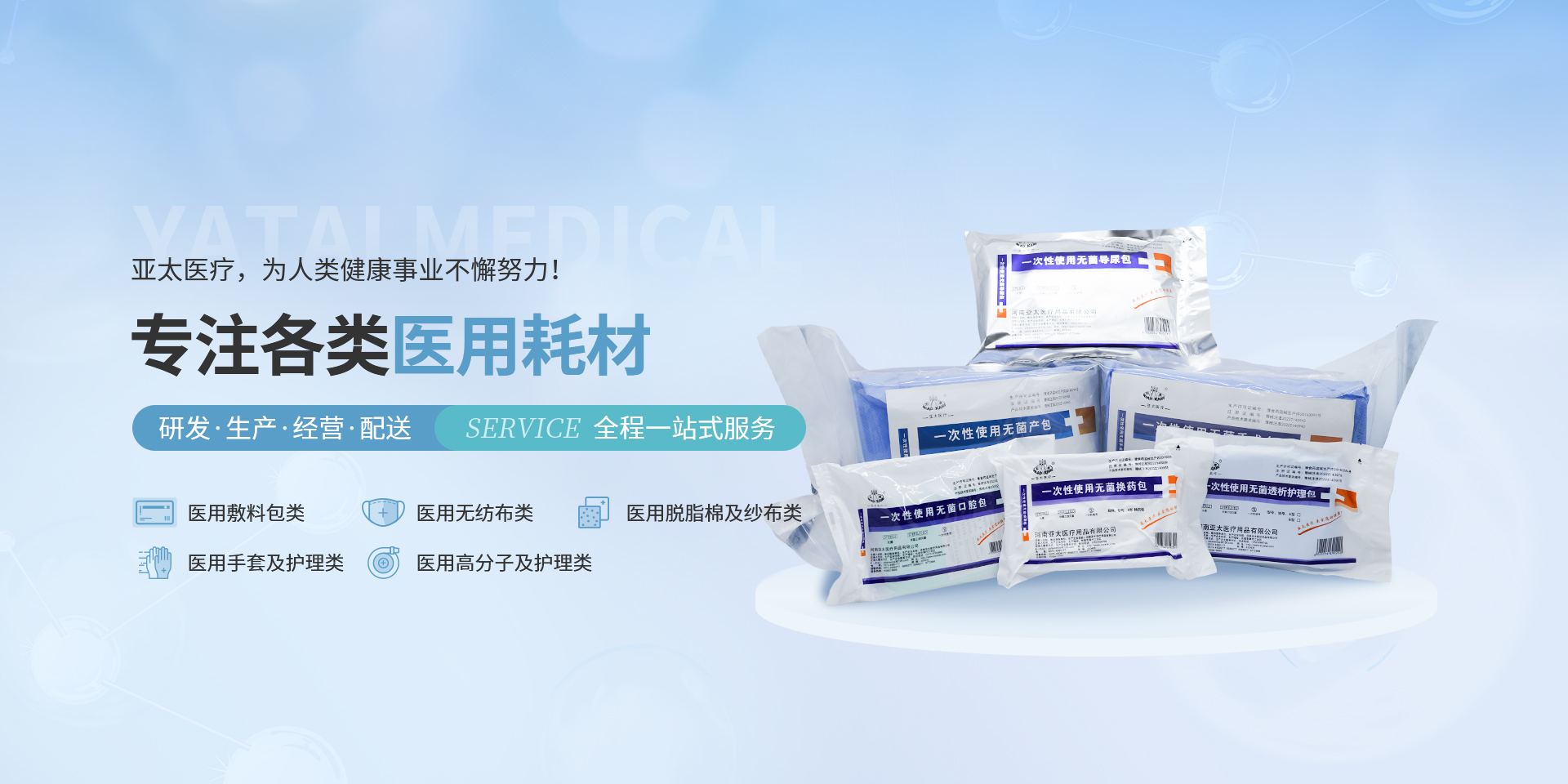 亞太始終專注于一次性醫療器械、衛生材料、高分子及敷料產品的研發、生產和經營,為人類健康事業的發展帶來深遠的意義